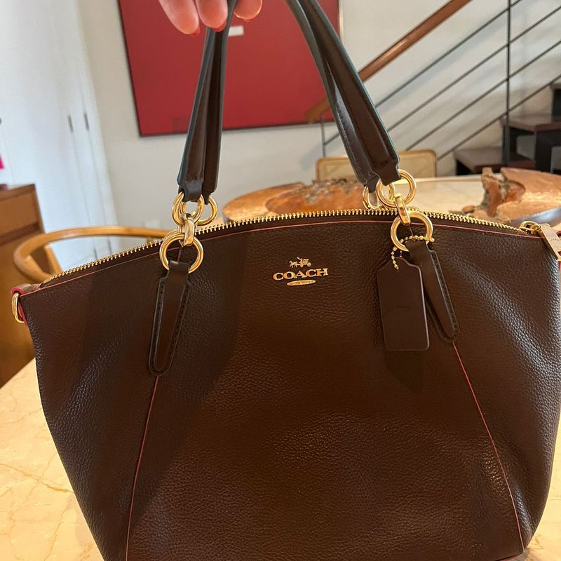 Bolsa Coach M dia Vinho com Acabamentos Rosa e Azul Bolsa de Very well made.