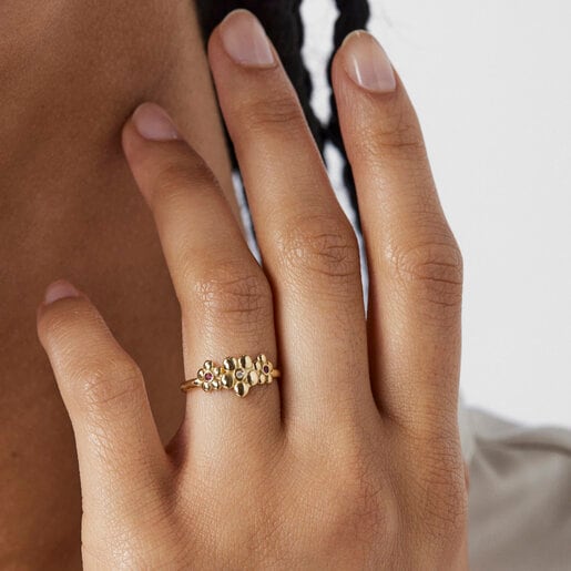 Anillo Tous Teddy Bear Stars de plata vermeil rosa espinela y rub Very well made.