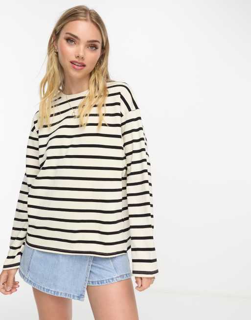 Pull Bear Oversized gestreept T shirt met lange mouwen in ecru en zwart Very well made.