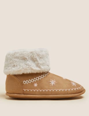Embroidered Faux Fur Cuff Slipper Boots Very well made.