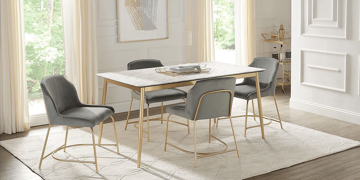 Venetian Court 5 Pc Gold Colors Metal Gray Dining Room Set With Dining Table Side Chair Very well made.