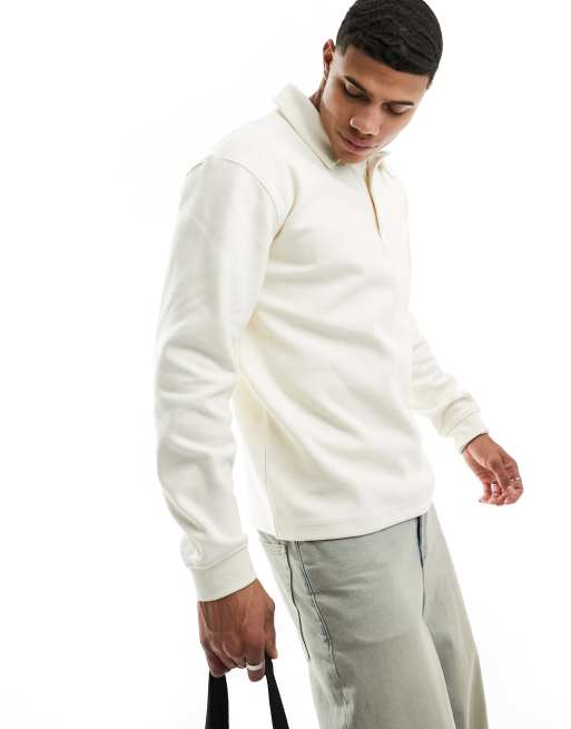 Selected Homme sweat long sleeve polo in ecru Very well made.