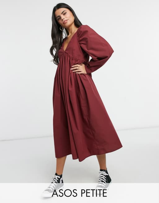 ASOS DESIGN Petite cotton babydoll midi dress in oxblood Very well made.