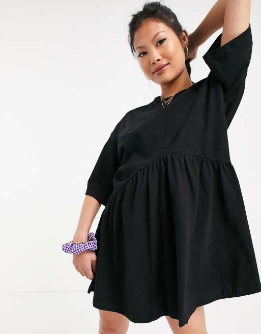 ASOS DESIGN Petite Robe babydoll courte oversize taille basse Noir Very well made.