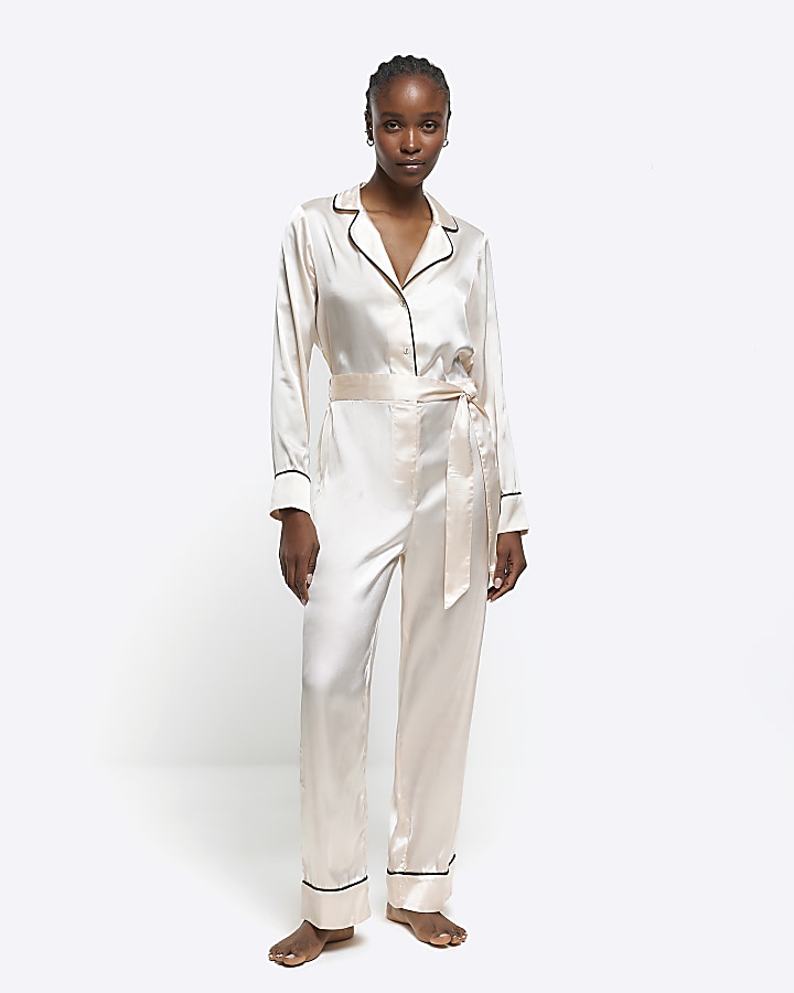 Pink satin pyjama jumpsuit River Island Very well made.