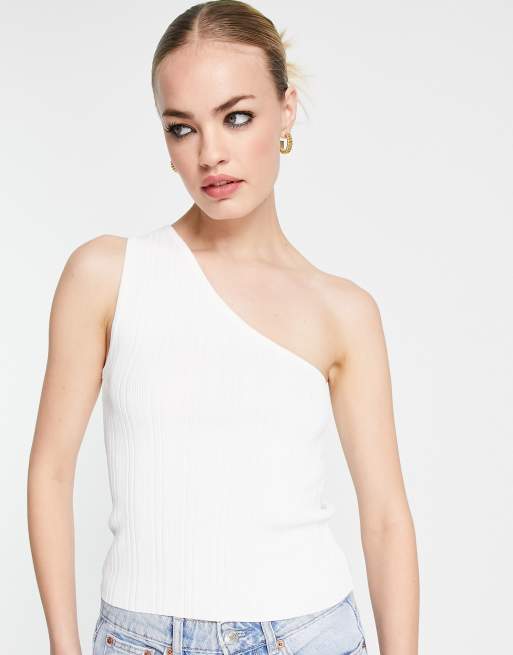 ASOS DESIGN top with one shoulder and open stitch in cream ASOS Very well made.