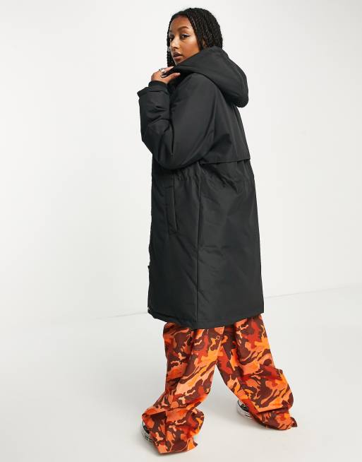 JJXX longline parka contrast hood coat in black Very well made.