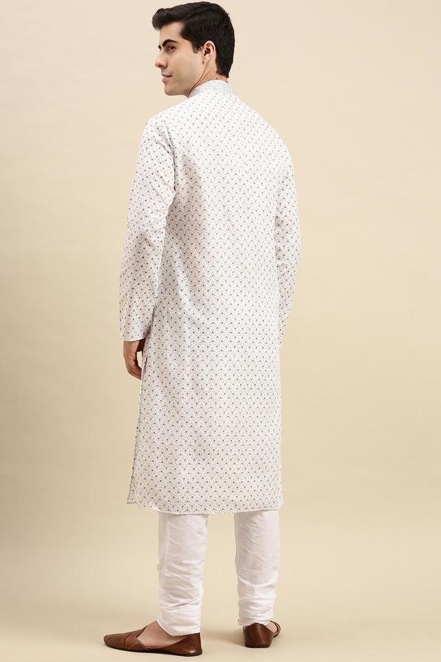 Buy SANWARA White Printed Cotton Regular Fit Mens Kurta Pyjama Set Very well made.