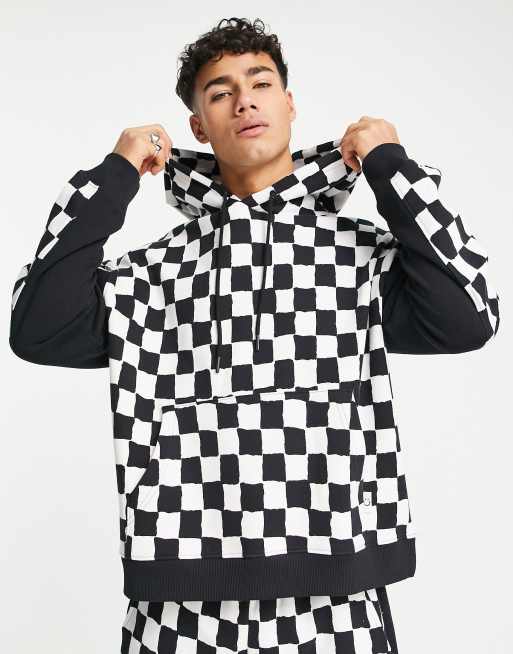 Topman oversized checkerboard print hoodie in black and white Very well made.