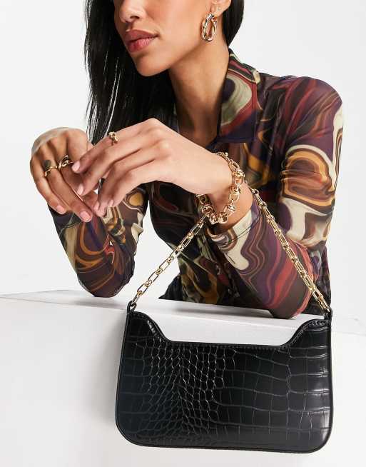 Mango croc shoulder bag in black ASOS Very well made.